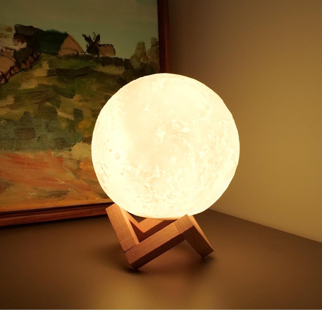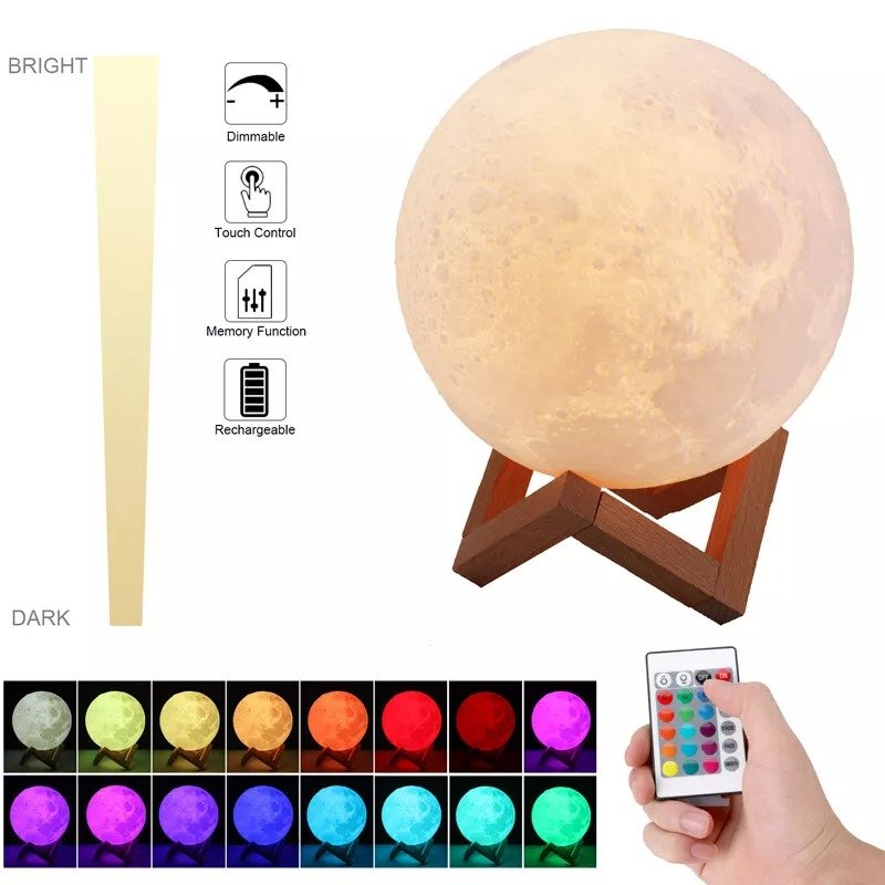 - Wooden Stand Included: The elegant wooden stand securely holds the moon lamp, adding a stylish touch to any room decor.